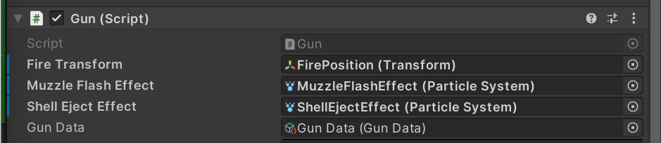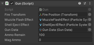 이제 Gun의 스크립트의 변수를 살펴봅시다.