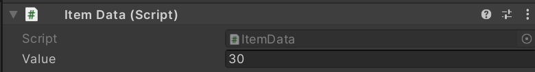 ItemData.cs 스크립트를 작성에 어태치해준다. 단순히 플레이어가 먹었을때 올라가는 점수값 변수만 있다.