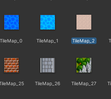 프로젝트뷰에서 TileMap오른쪽 화살표▶를 클릭하면 확인할 수 있습니다.