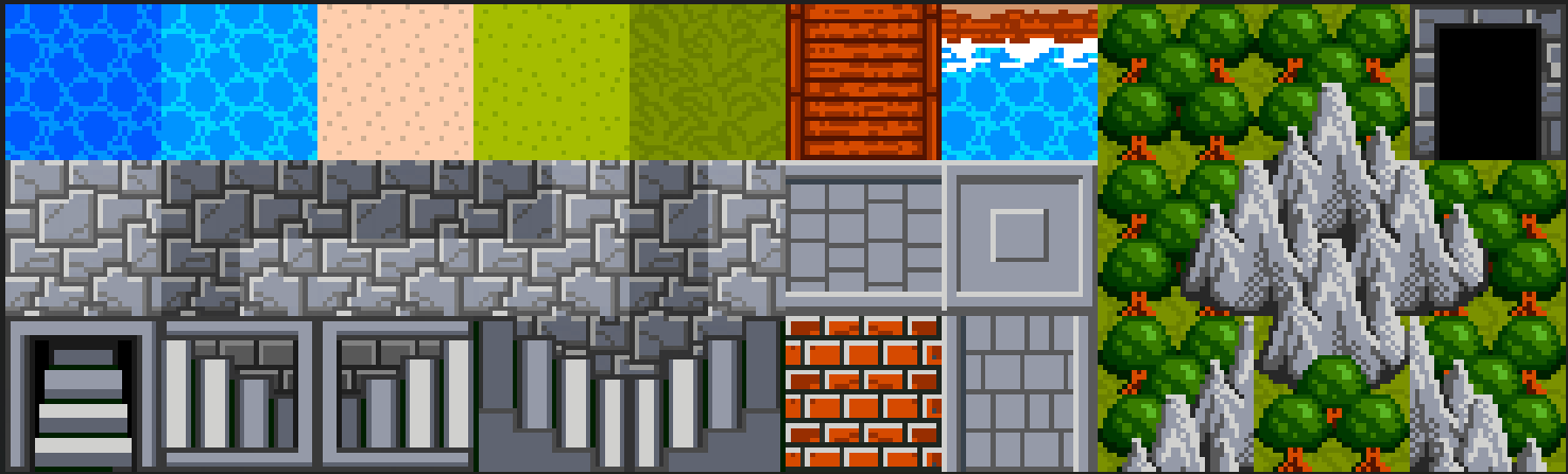 Map폴더에서 TileMap을 선택합니다. 한장의 그림안에 32x32픽셀규격의 여러 타일맵을 가진 도트이미지 입니다.
