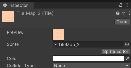 프로젝트뷰에서 타일에셋을 선택하면 인스펙터뷰에서 Collider Type이라는 풀다운 메뉴를 선택할 수 있습니다.