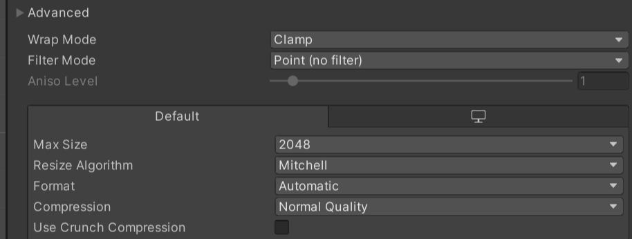 FilterMode를 Point(no filter)로 변경해 도트이미지의 가장자리가 선명하게 보이도록 합니다.