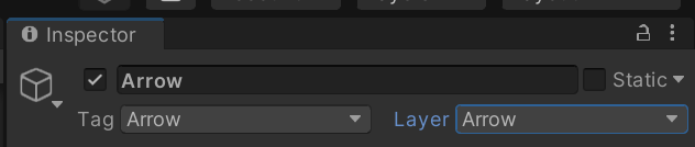 화살 : 이름을 Arrow라는 태그와 레이어를 만들어 설정합니다. 접촉판정에 사용됩니다.