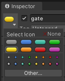 CreateEmpty를 하나만들어 gate로 이름 바꾸고 Boss의 자식으로 하고 가슴쯤에 배치합니다. 씬뷰에서 구별하기 쉽게 칼라아이콘을 설정합니다. 총알이 발사될 위치로 사용합니다.