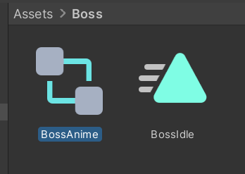 BossAnime을 열고 3개의 애니메이션이 다 있는지 확인합니다. 없으면 끌어다 놓습니다.