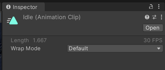 설정완료후는 우상쪽 Lock을 푼다. Play해보면 Player가 Idel클립을 반복한다. 한번만 하고 끝난다면 아까 Wrap Mode를Loop로 설정 안한거다.