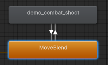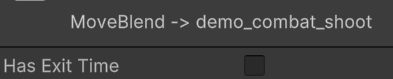 demo_combat_shoot animation을 끌어다 animation control에 놓고 MoveBlend와 서로 transition을 만들어 줍니다