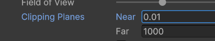 이건 카메라의 절두체의 문제인데 Clipping Planes를 Near를 0.22로 변경합니다.
