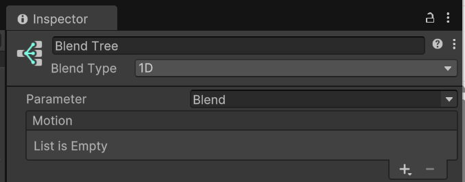 MoveBlend안으로 들어가 BlendTree노드가 있는데 이걸 클릭하면 Inspector에서 Motion List가 비어 있습니다. +를 눌러