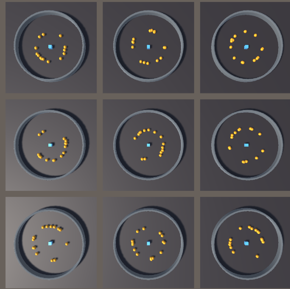 플레이해서 공이 외곽에서 생성되어 에이전트와 충돌하면 재시작을 하는지 확인합니다.