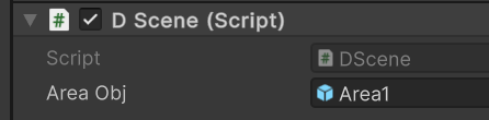 Area 프리팹을 열고 DArea 스크립의 변수들을 연결해줍니다.