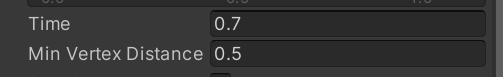 타임은 Trail의 지속시간 Min Vertex Distance는 Trail의 진동시간이다. 길면 파도가 길어진다.