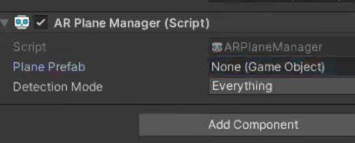 하이라키에서 AR Session Origin을 선택하고 Add Component를 누르고 AR Plane Manager를 검색해서 넣어준