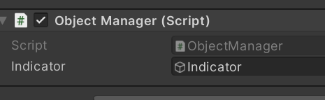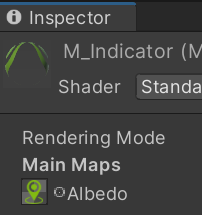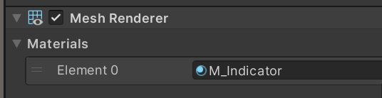 하이라키의 Indicator를 고르고 Inspector의 MeshRenderere의 Materials에 M_Indicator를 끌어다 놓는다.