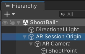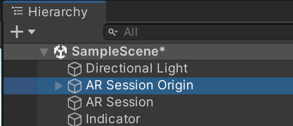 Hierachy의 +를 눌러 AR Session Origin을 추가한다