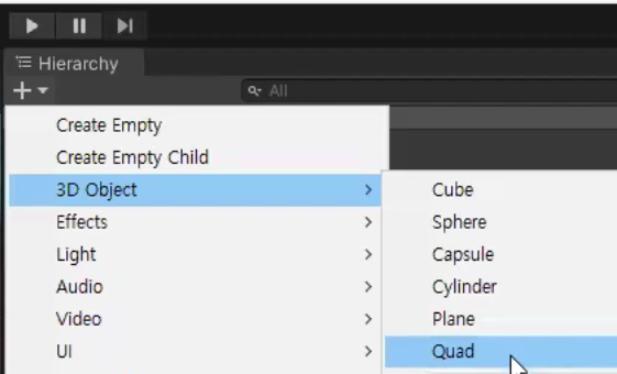 하이라키+를 눌러 Quad를 추가하고 indicator로 이름을 바꾼다
