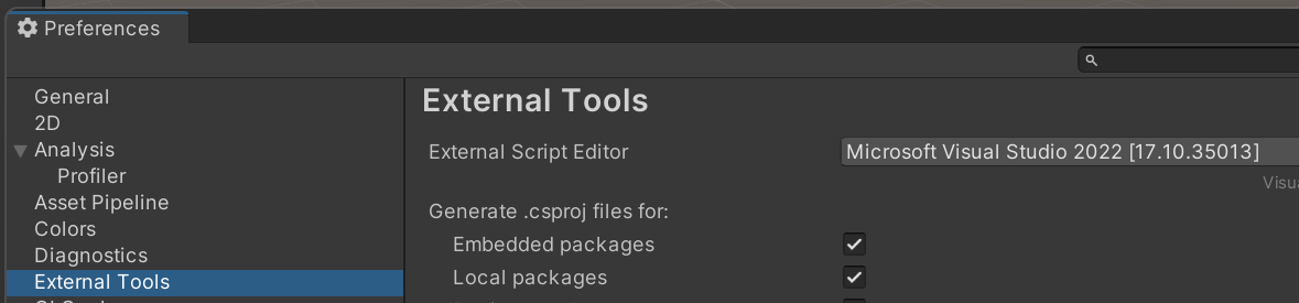 만들어진 스크립트를 쳐보면 VisualStudio가 열린다. 안열리면 Edit>Preference를 체크한다.