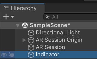 다음 스크립터를 추가하면 앱이 Plane을 생성하면 그 위에 인디케이터를 표시해준다