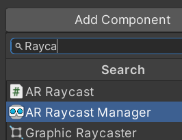 AR Session Origin 을 선택후 AR Raycast Manager를 추가하자.