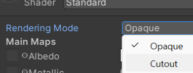머티리얼을 새로만들어 M_Indicator로 하고 Rendering Mode를 Cutout로 변경하고 Indicator PNG를 끌어다 albedo 앞 박스에 놓는다.